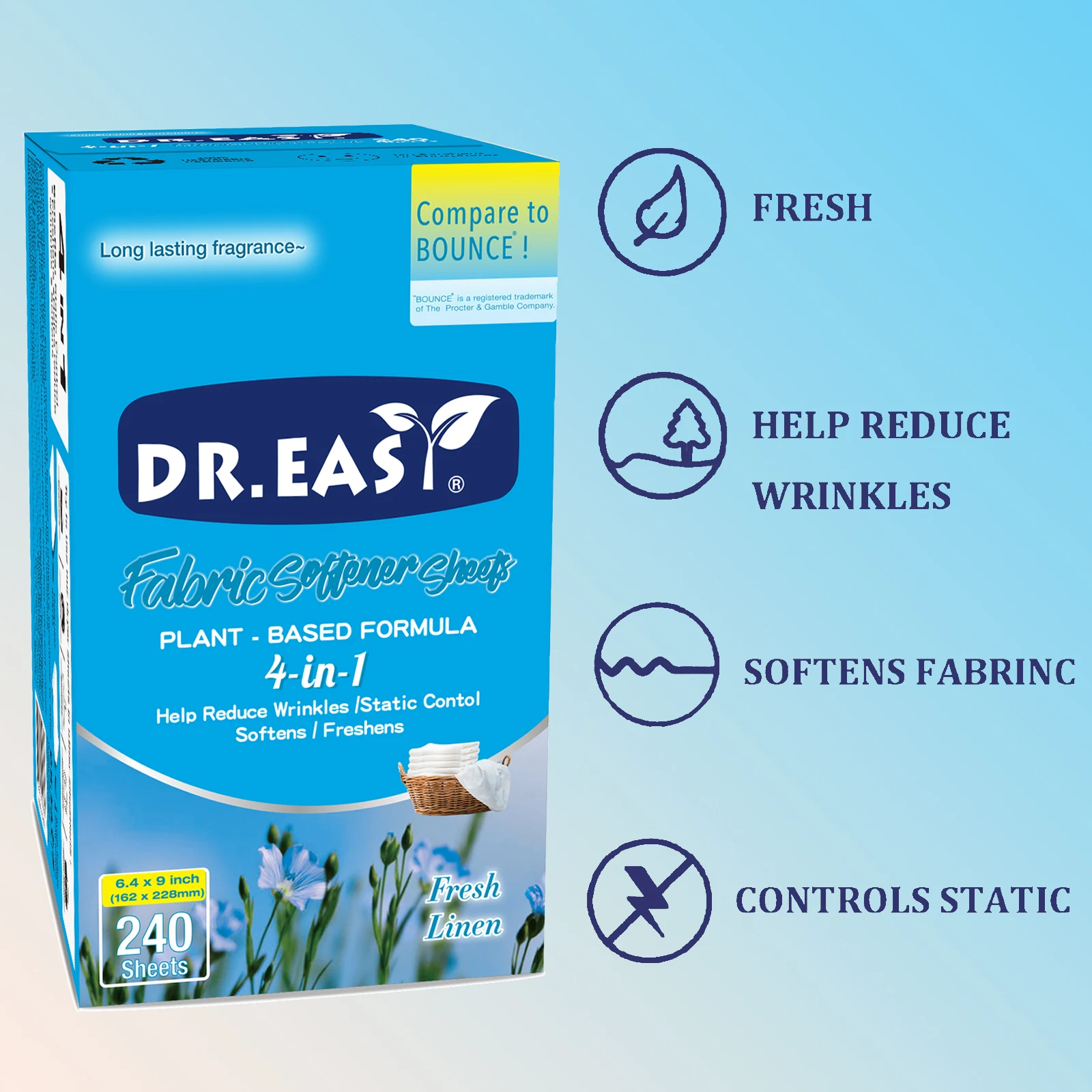 صفحه خشک کن Dr.Easy با دقتی بی نظیر تحت عنوان دوستانه با قسمت آب و هوا ساخته شده است که در جعبه فشرده قرار دارد، فرمول آن از روغن نخل گرفته شده است و با زیربنای غیرنسجیده اسپن باند ساخته شده است. فقط کافیست آن را در خشک کن خود انداخته و برای نرم کردن بافت ها، کاهش زنگ زنگی، کاهش الکتریسیته ثابت و حتی کمک به جلوگیری از چسبیدن موی حیوانات به لباس استفاده کنید، در حالی که لباس های شما نرم، بوی خوش و تمیز می شوند.