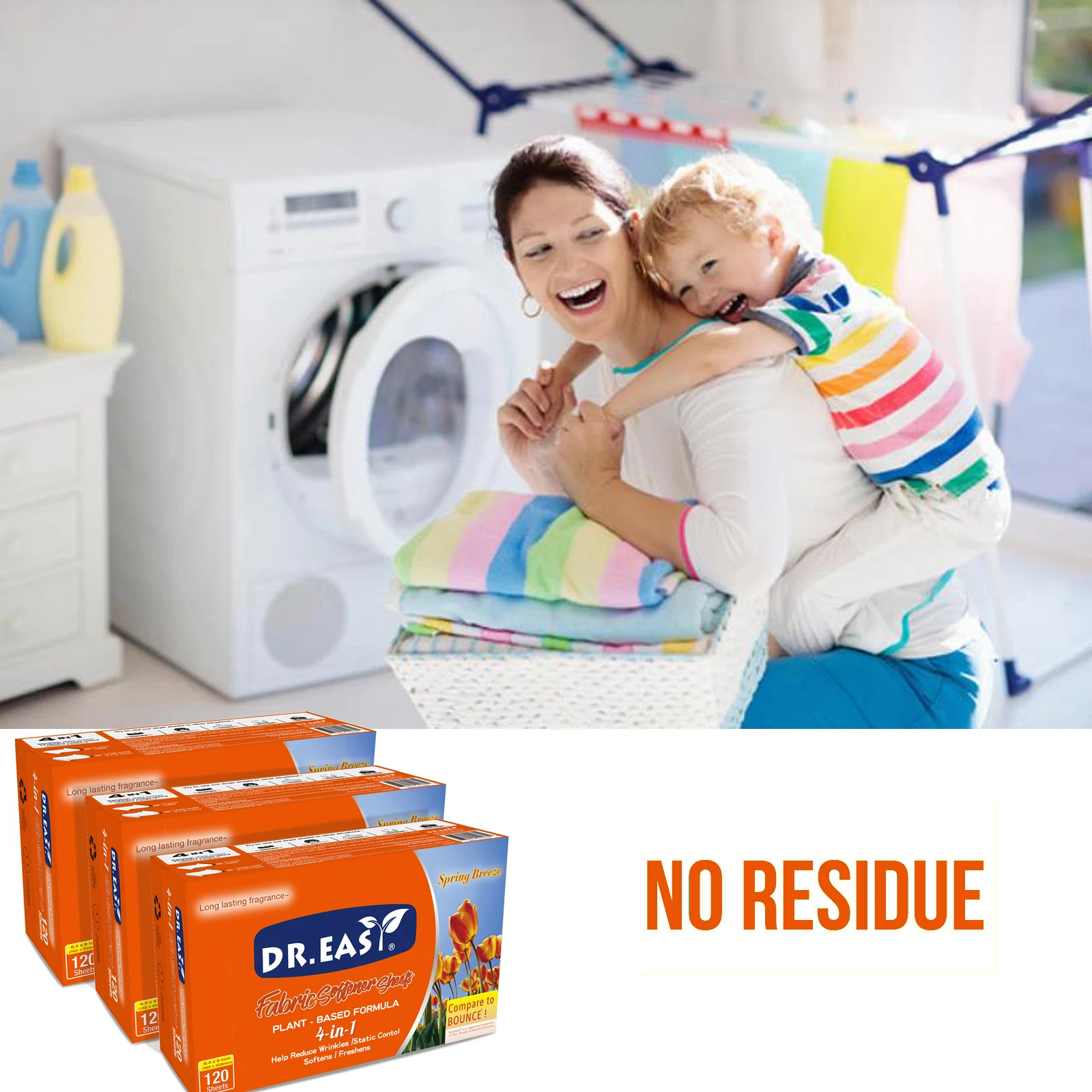 Dr.Easy dryer sheets are plant-based formulated by high-quality ingredients that are proudly cruelty-free & vegan, never tested on animals, with 0% dyes, 0% fragrances,0% phosphates,0% parabens, 0% bleach or 0% brighteners. Hypoallergenic formula made for sensitive skin and safe around kids, pets, and the planet.