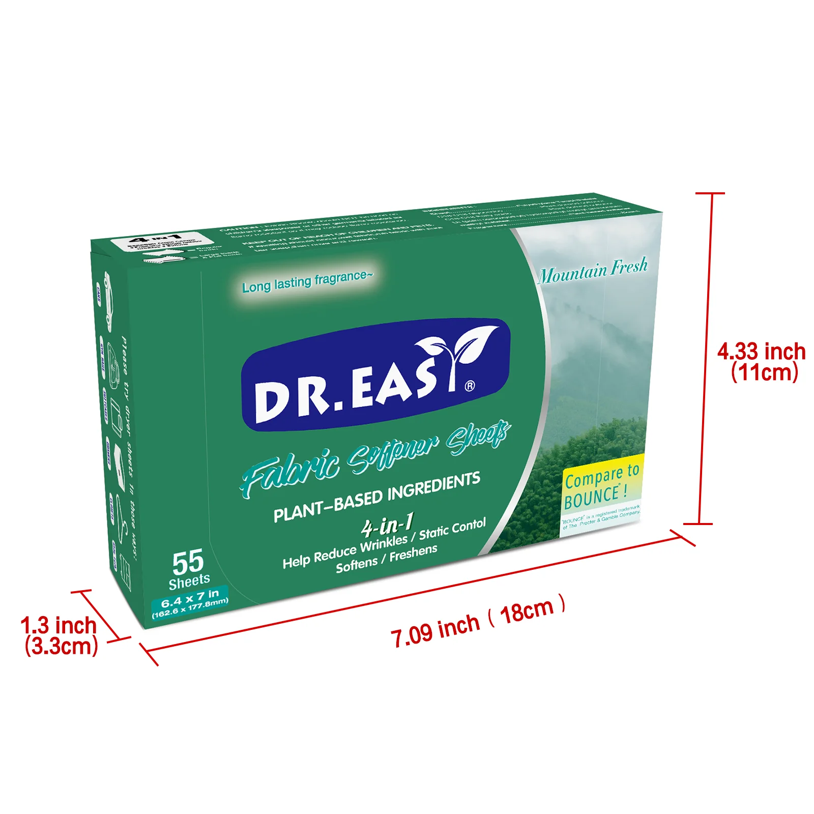 Dr.Easy dryer sheets are carefully crafted Climate Pledge Friendly using compact box,formula derived from palm oil,spun-bond nonwoven substrate. Just toss in your dryer to soften fabrics, reduce wrinkles, reduce static cling and even help repel pet hair, while leaving your clothes feeling soft,smelling cozy and clean.
